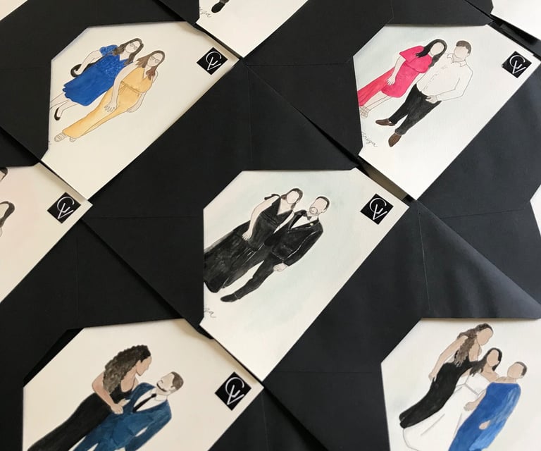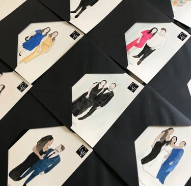 Cada retrato é finalizado com cuidado e entregue ao convidado em um envelope — elegante, discreto e perfeito para guardar a lembrança com carinho. As pinturas são feitas em papel 300g de alta qualidade, com tamanho que se encaixa perfeitamente no envelope (geralmente A5 ou 13x18cm, dependendo do projeto). Se desejar que seja entregue de outra forma, podemos conversar sobre outras possibilidades