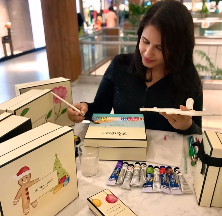 O ideal é ter uma mesa de apoio, uma ou duas cadeiras e uma boa iluminação no local da estação de pintura. Caso não tenha esses itens disponíveis, podemos conversar sobre soluções e incluir no orçamento a estrutura completa.