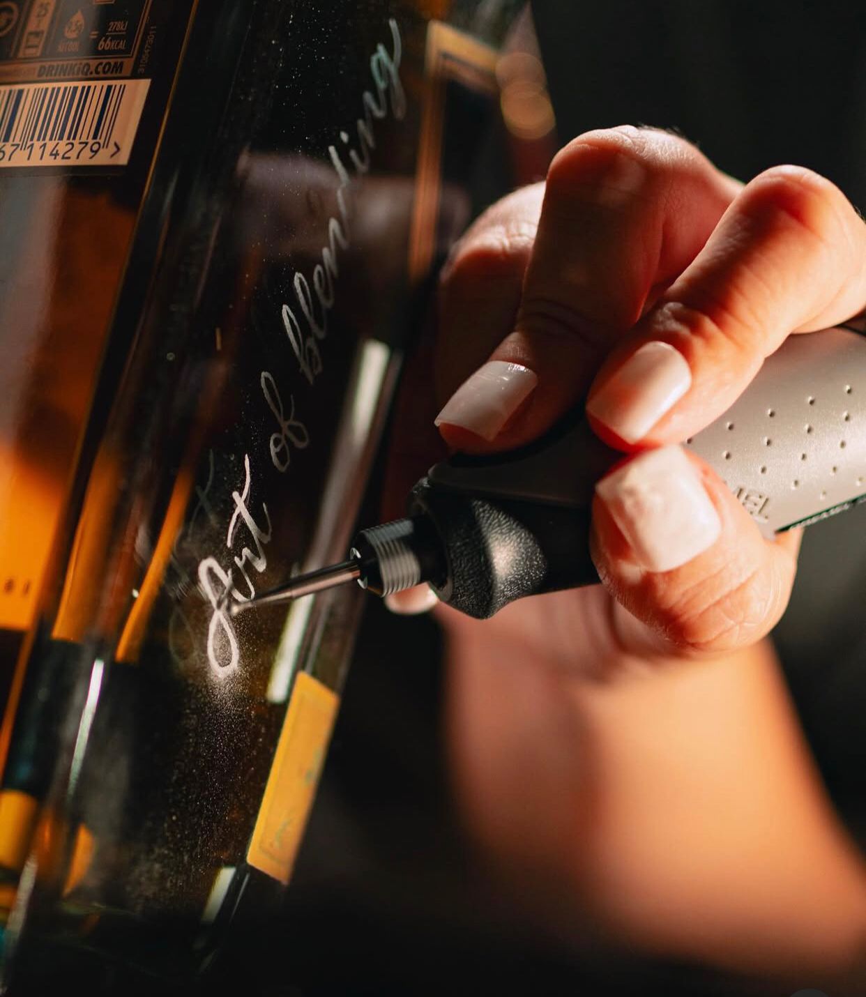 Bebidas gaseificadas NÃO podem ser gravadas devido ao risco de explosão da garrafa. Isso inclui garrafas de champanhe, cerveja, espumante, etc. A caligrafia com caneta de tinta é uma alternativa segura à gravação e tem um visual igualmente incrível!