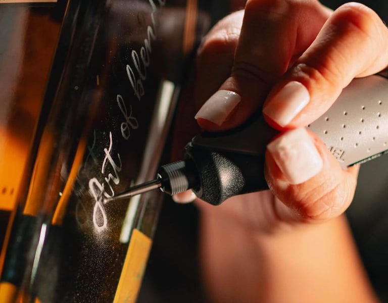 É uma técnica de gravação feita à mão, na hora, diante dos convidados. Cada peça é personalizada com nomes, iniciais, datas ou mensagens, tornando-se um presente único e cheio de significado.