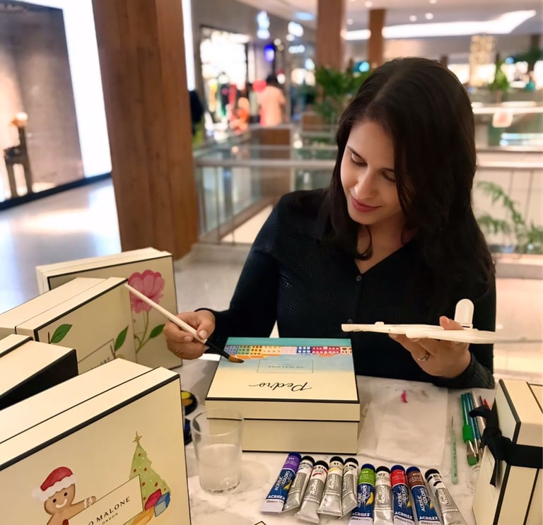 O ideal é ter uma mesa de apoio, uma ou duas cadeiras e uma boa iluminação no local da estação de pintura. Caso não tenha esses itens disponíveis, podemos conversar sobre soluções e incluir no orçamento a estrutura completa.