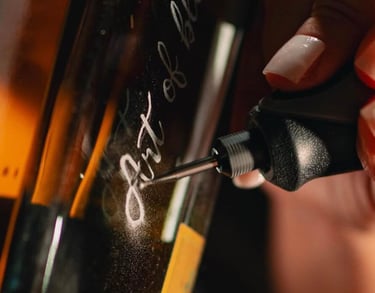 É uma técnica de gravação feita à mão, na hora, diante dos convidados. Cada peça é personalizada com nomes, iniciais, datas ou mensagens, tornando-se um presente único e cheio de significado.