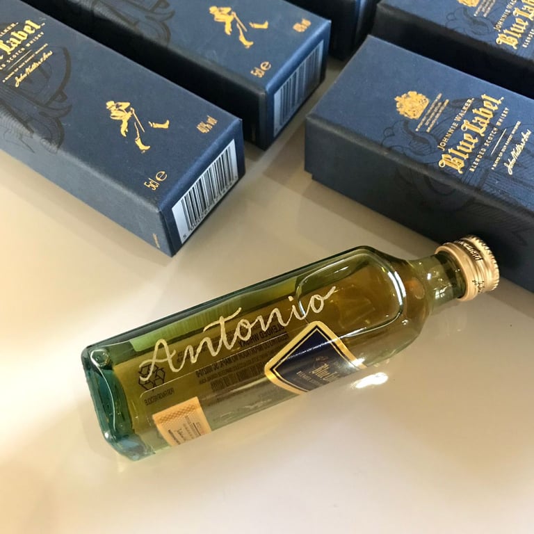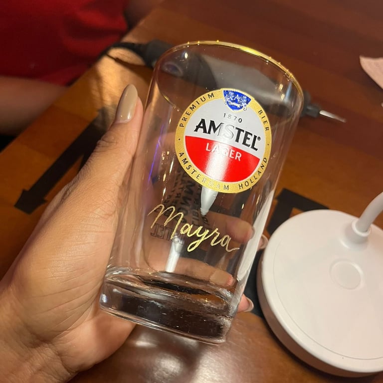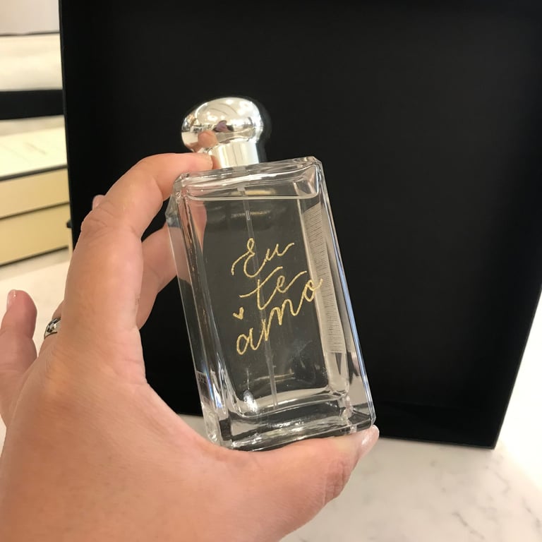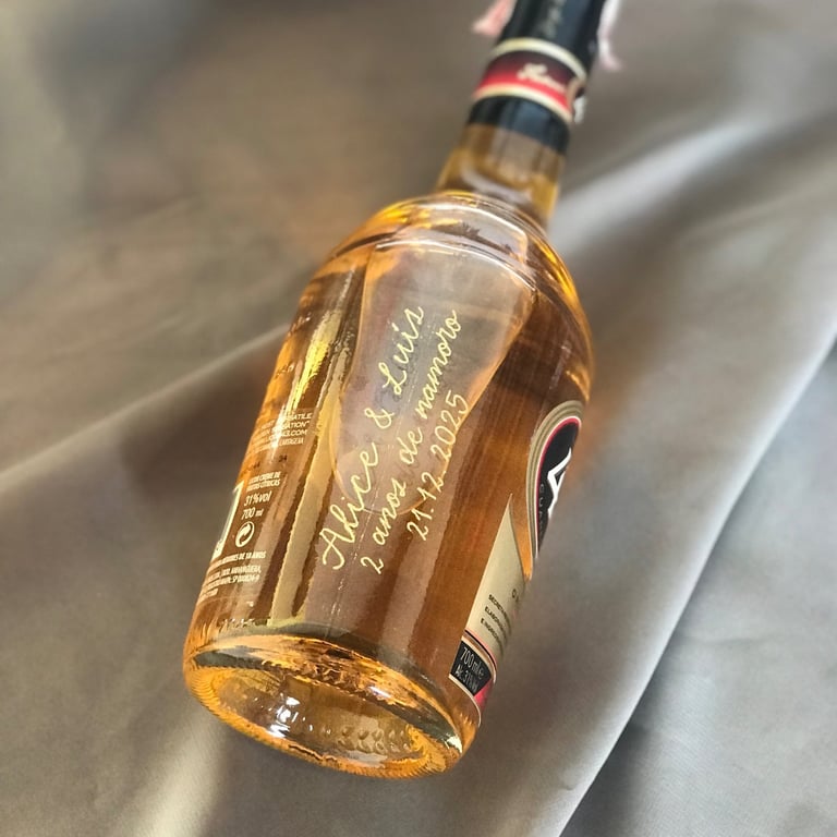 Bebidas gaseificadas NÃO podem ser gravadas devido ao risco de explosão da garrafa. Isso inclui garrafas de champanhe, cerveja, espumante, etc. A caligrafia com caneta de tinta é uma alternativa segura à gravação e tem um visual igualmente incrível!